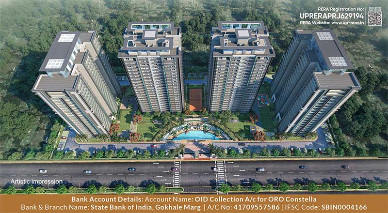 Oro Constella offers a total of four towers, followed by lush green surroundings and a luxurious swimming pool area. This lavish property comes with world-class infrastructure and facilities like a seating area, gym, meditation space, garden, etc., which provide the residents with a peaceful and soothing lifestyle.